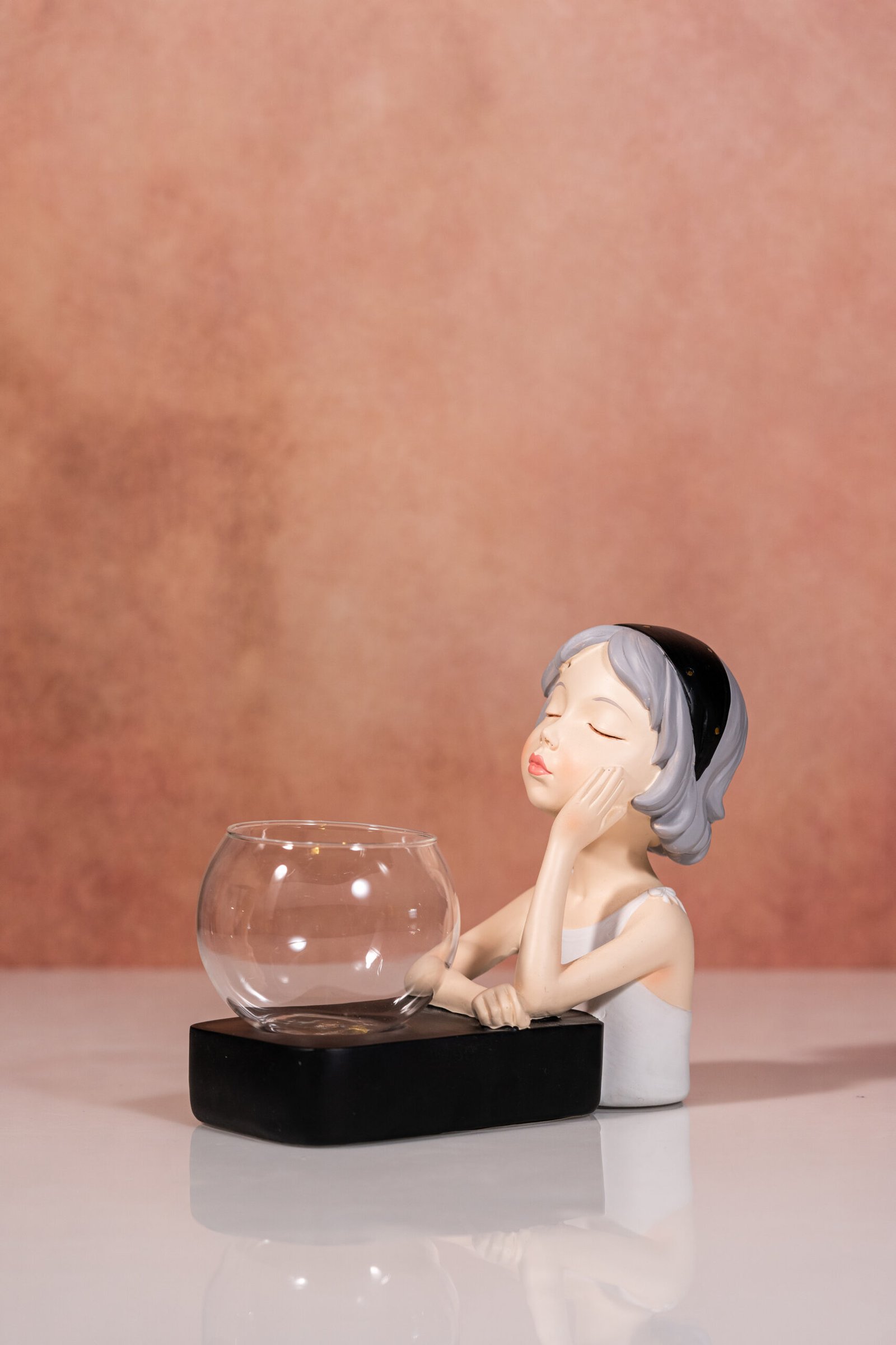 A Charming and Whimsical Decorative Resin Girl Figurine with Integrated Glass Vase Showpiece for Home