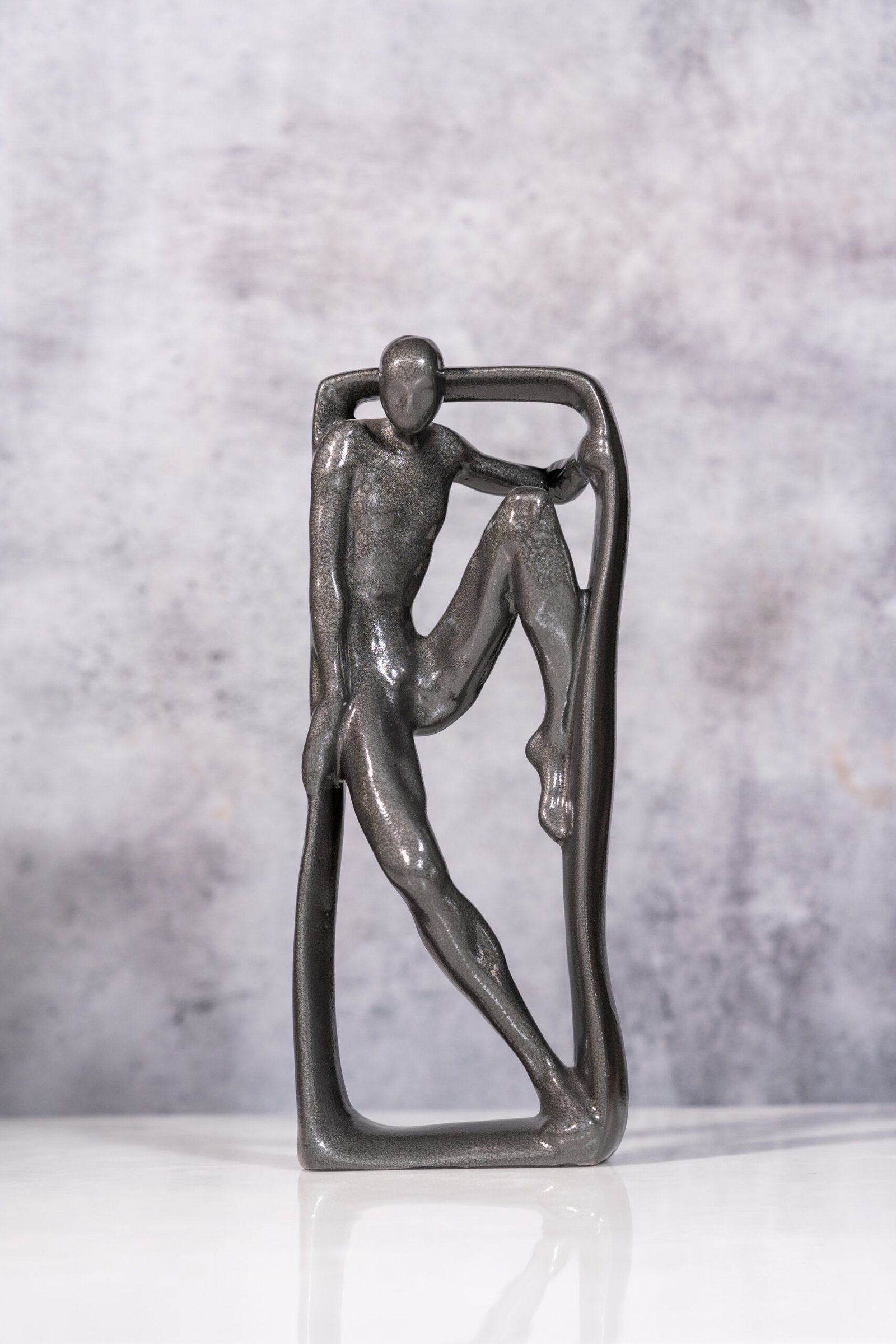 A Silvered Bronze Figure in Abstract Embrace, Capturing the Essence of Solitude and Strength within a Modern Framework