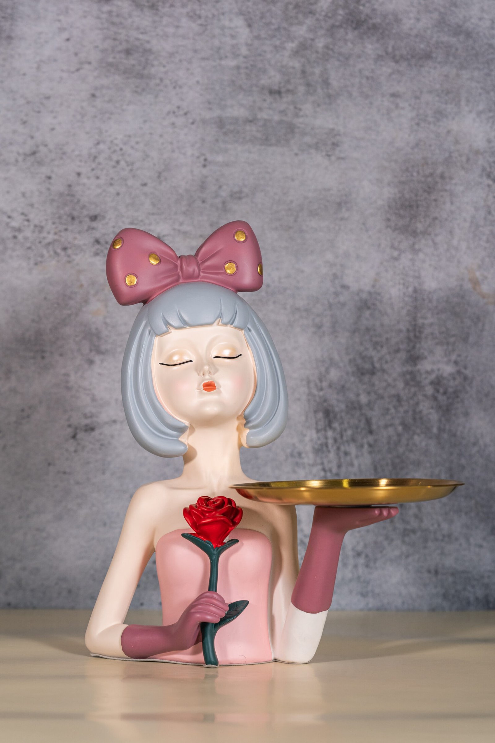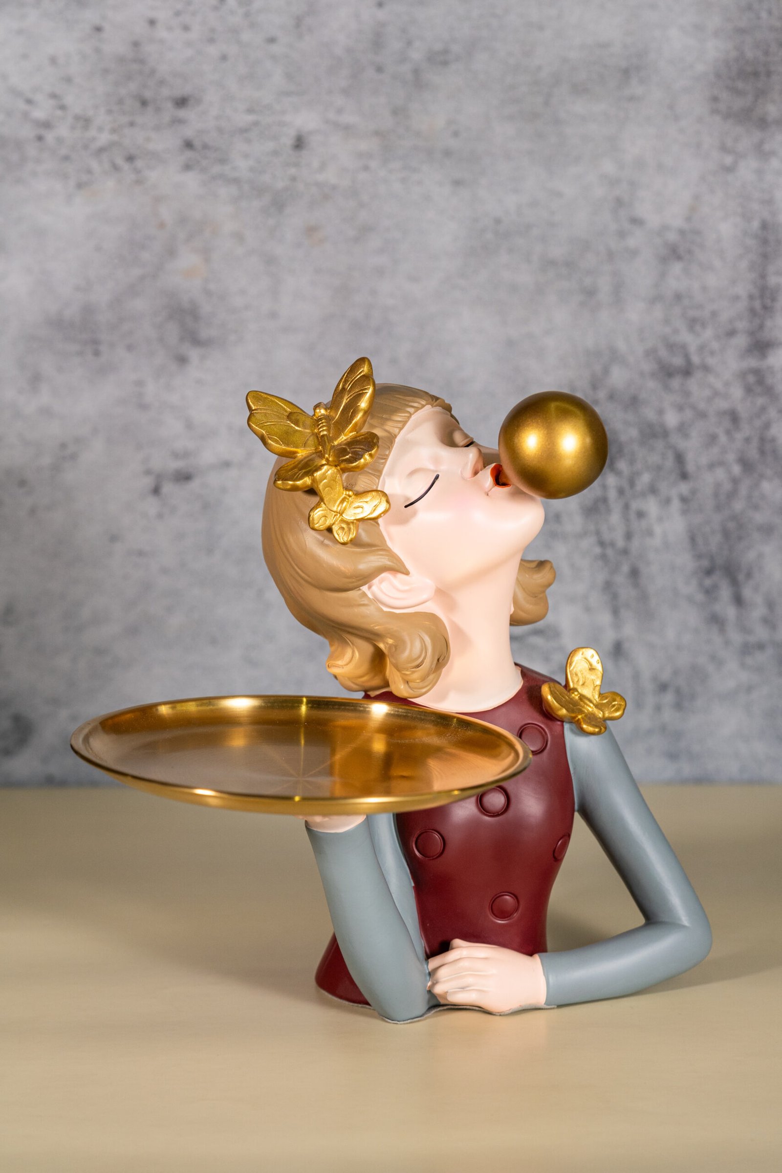 Be the first to review “Blush-Colored polyresin Serving Lady Figurine with Golden-Finished Metal Tray”