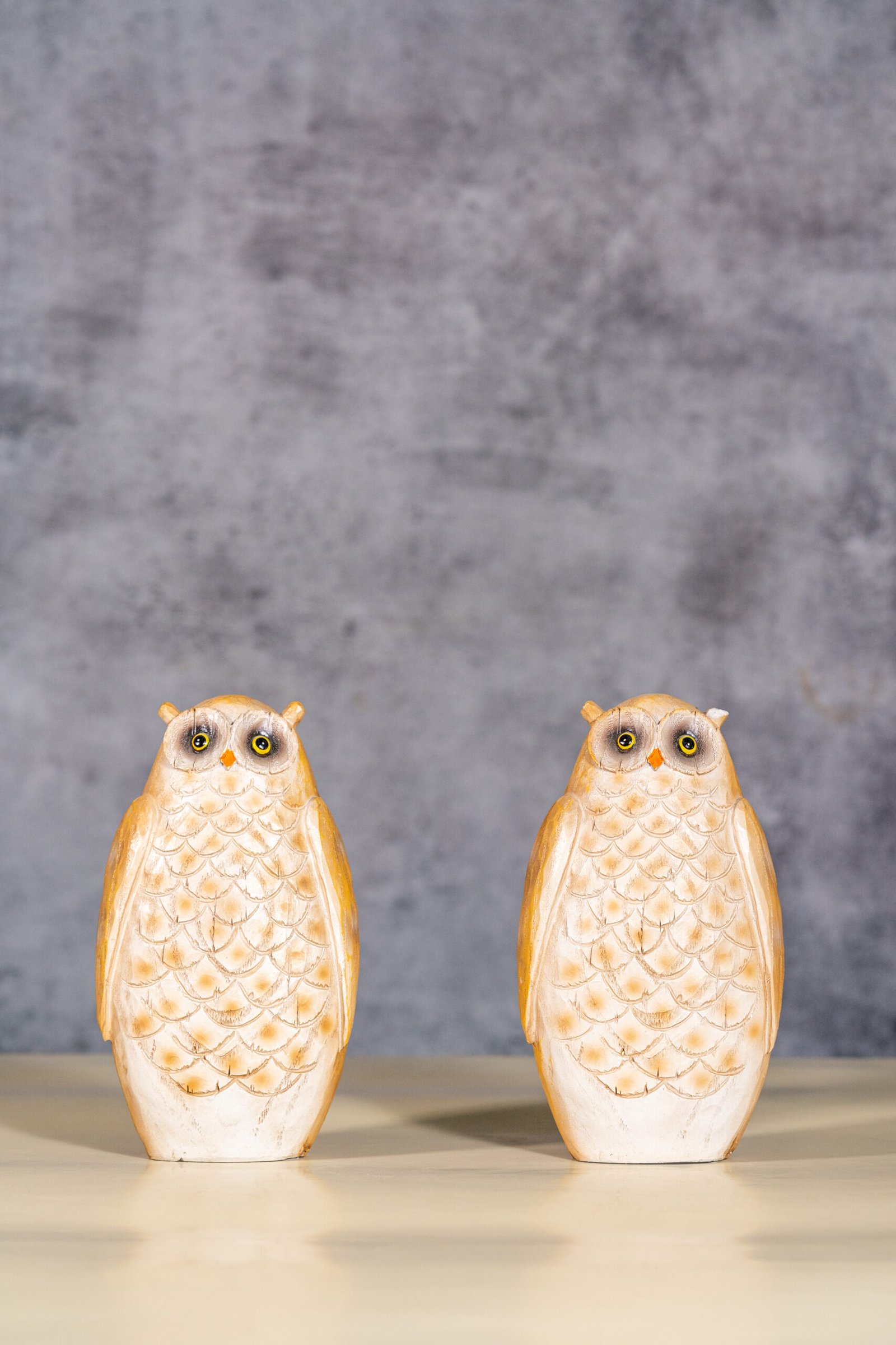 Decorative Cream-colored Owl figures with intricate feather Details