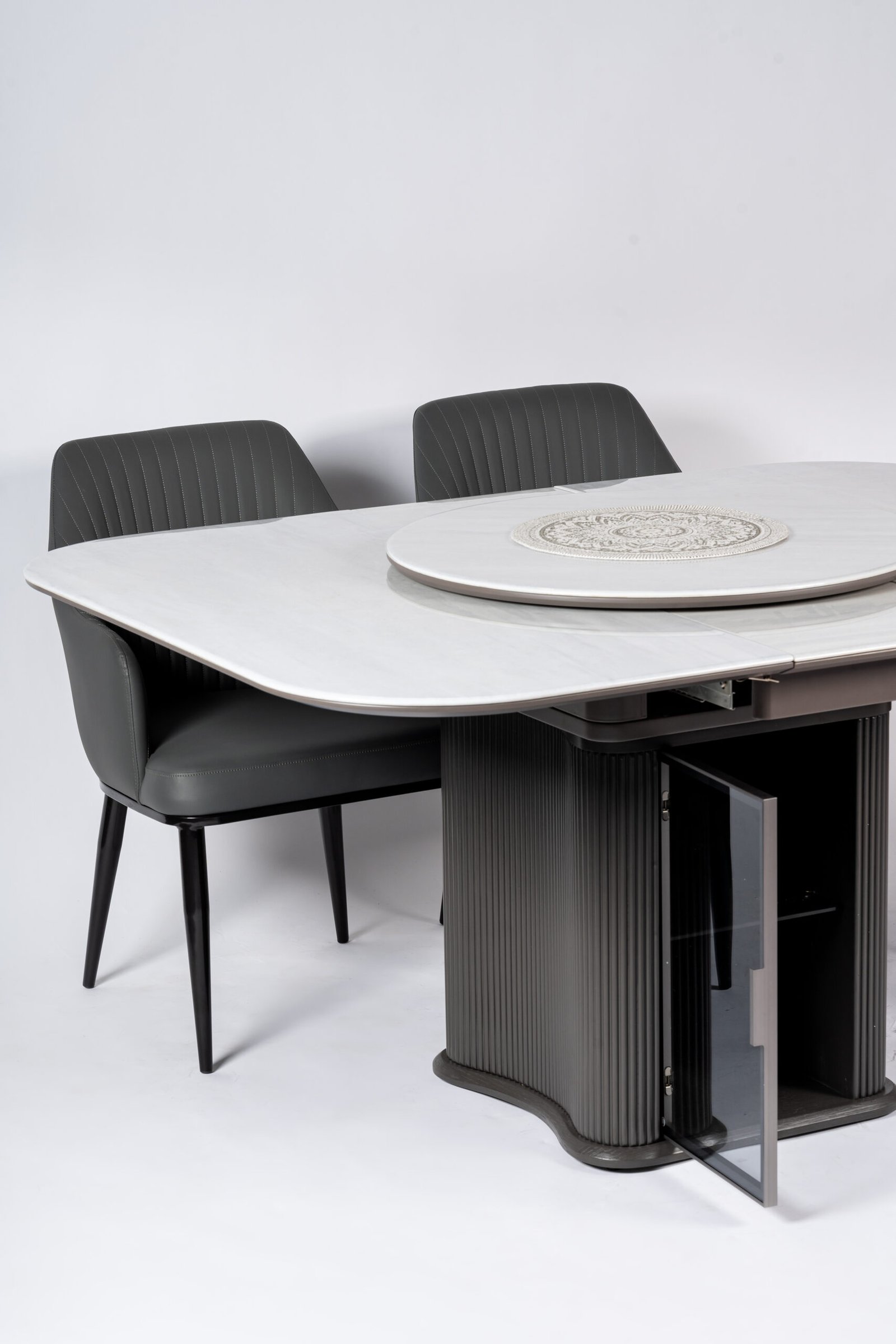 The compact and well-proportioned silhouette of both the seats and the small sofa, opens up to a new way of using the dining space.