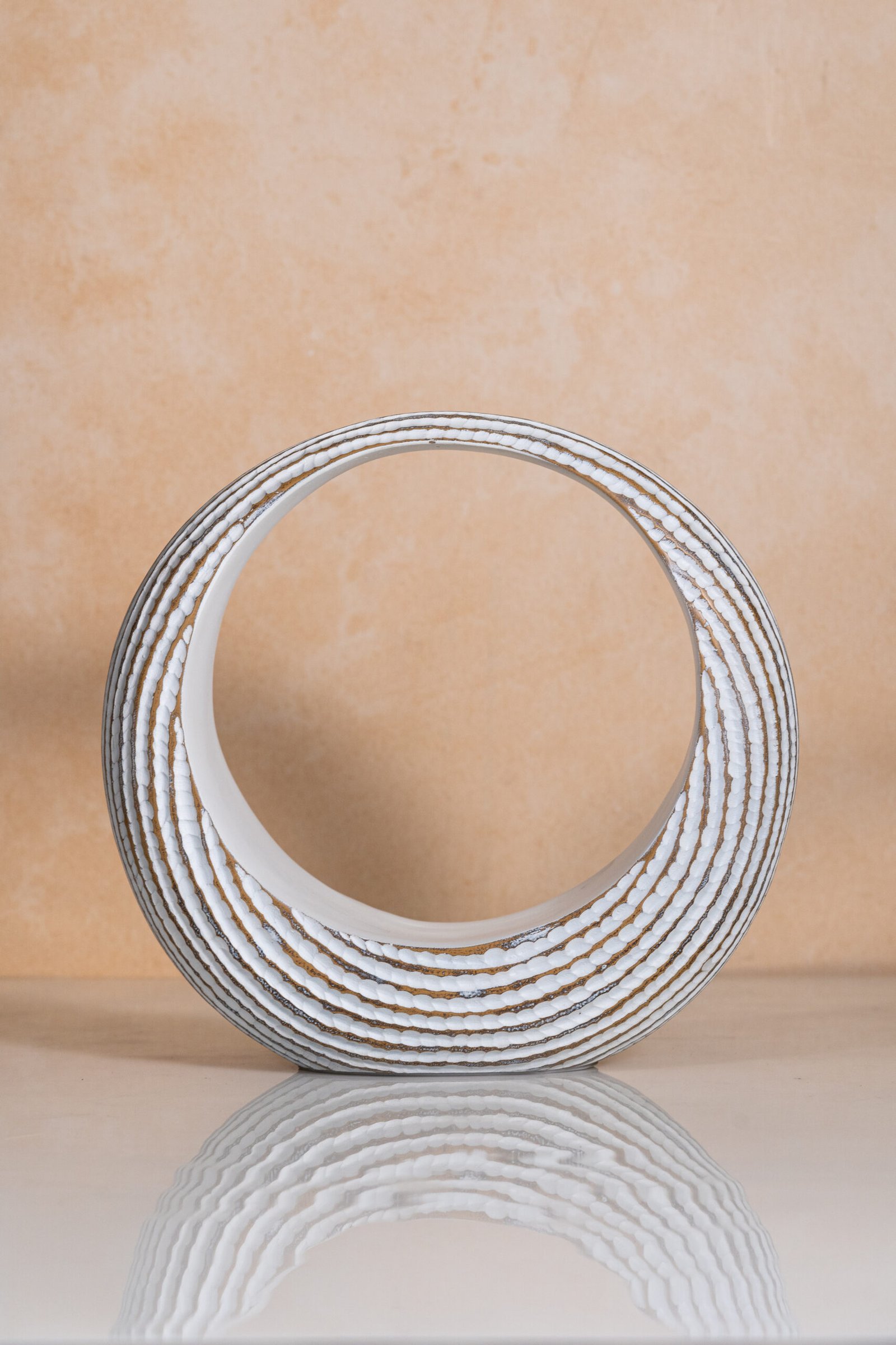 Modern Abstract Seashell-Inspired Round Decor Accent with Textured Ridges