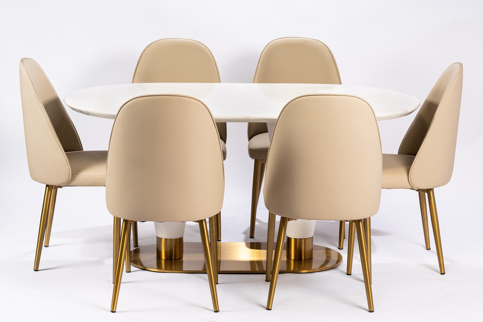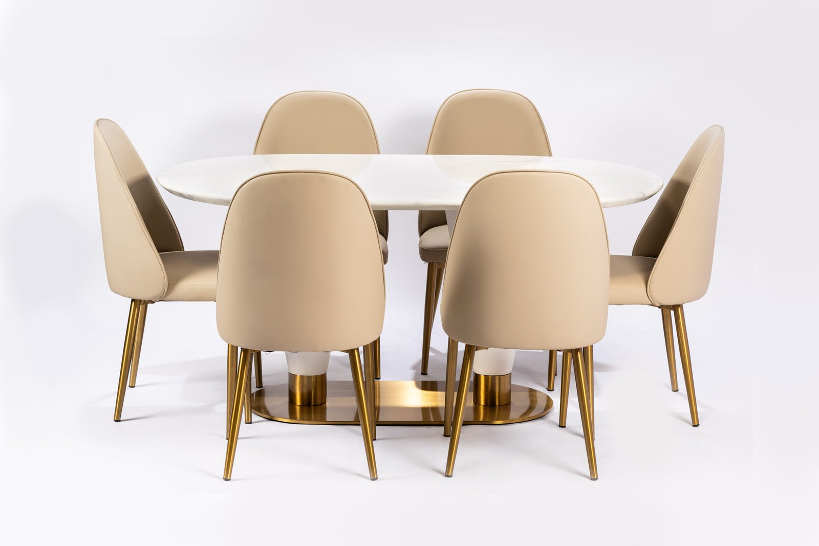 Modern Stackable Dining Chairs with Beige Upholstery and Elegant Gold-Finished Metal Legs