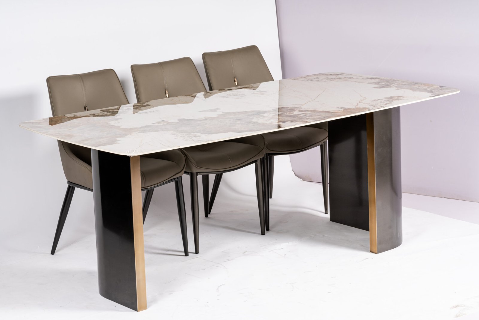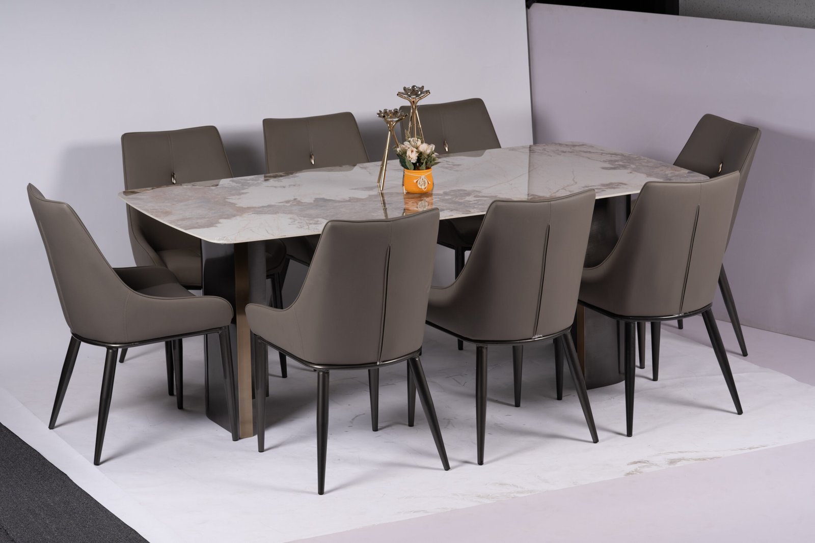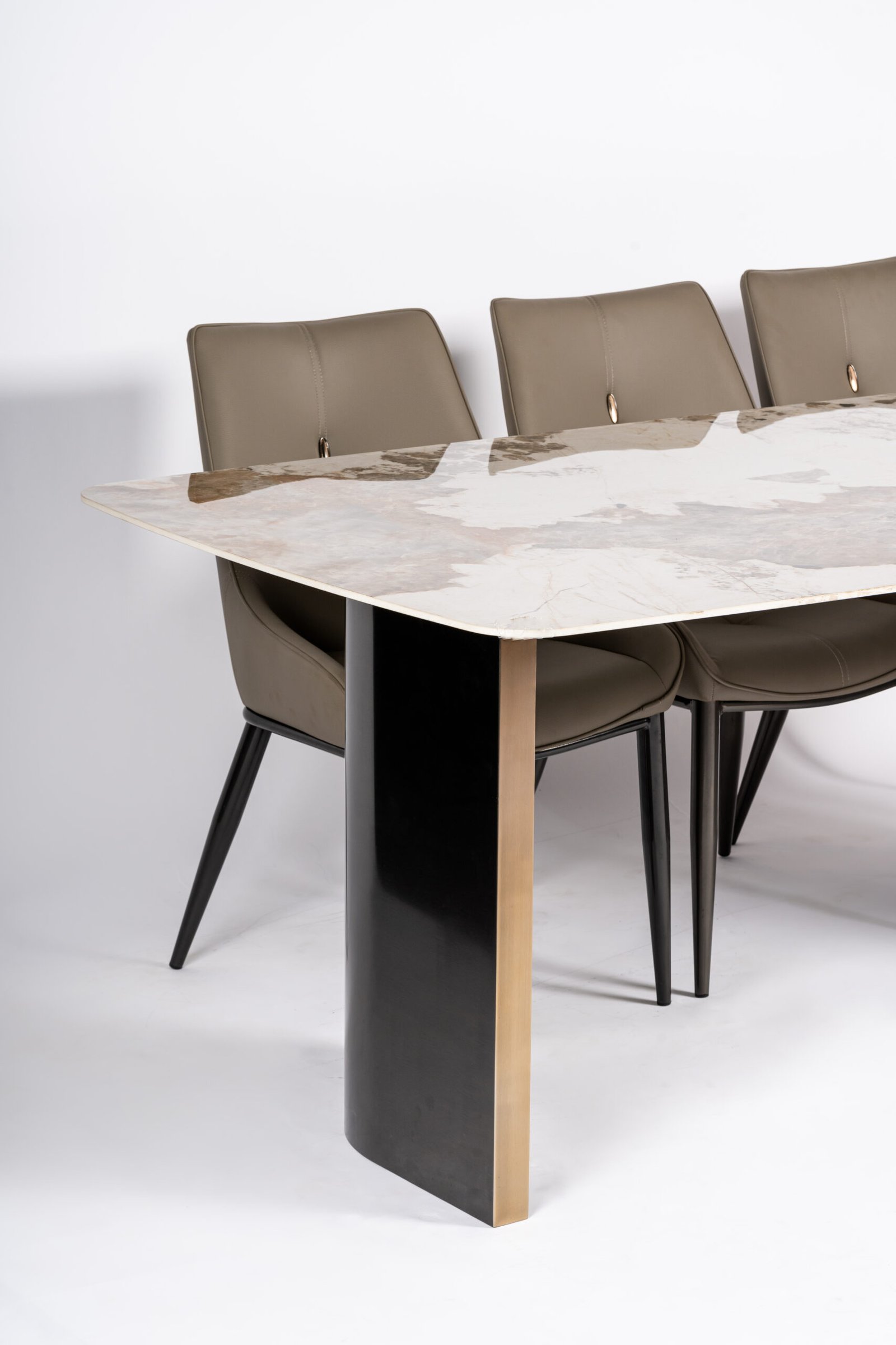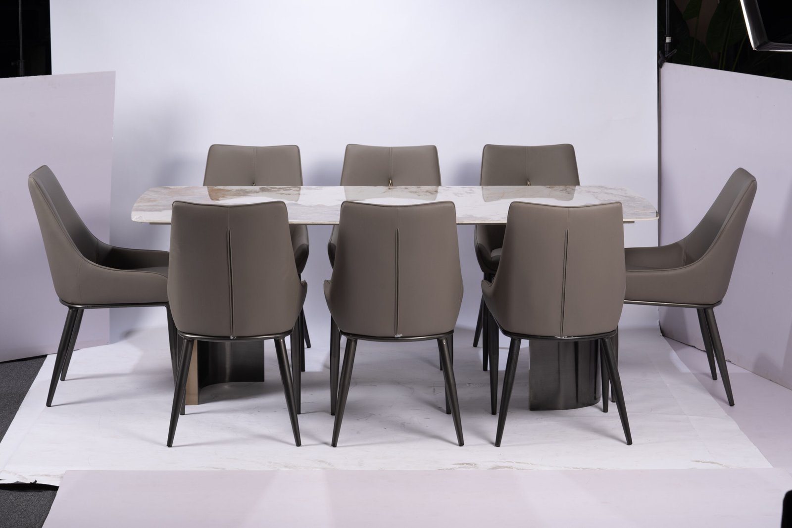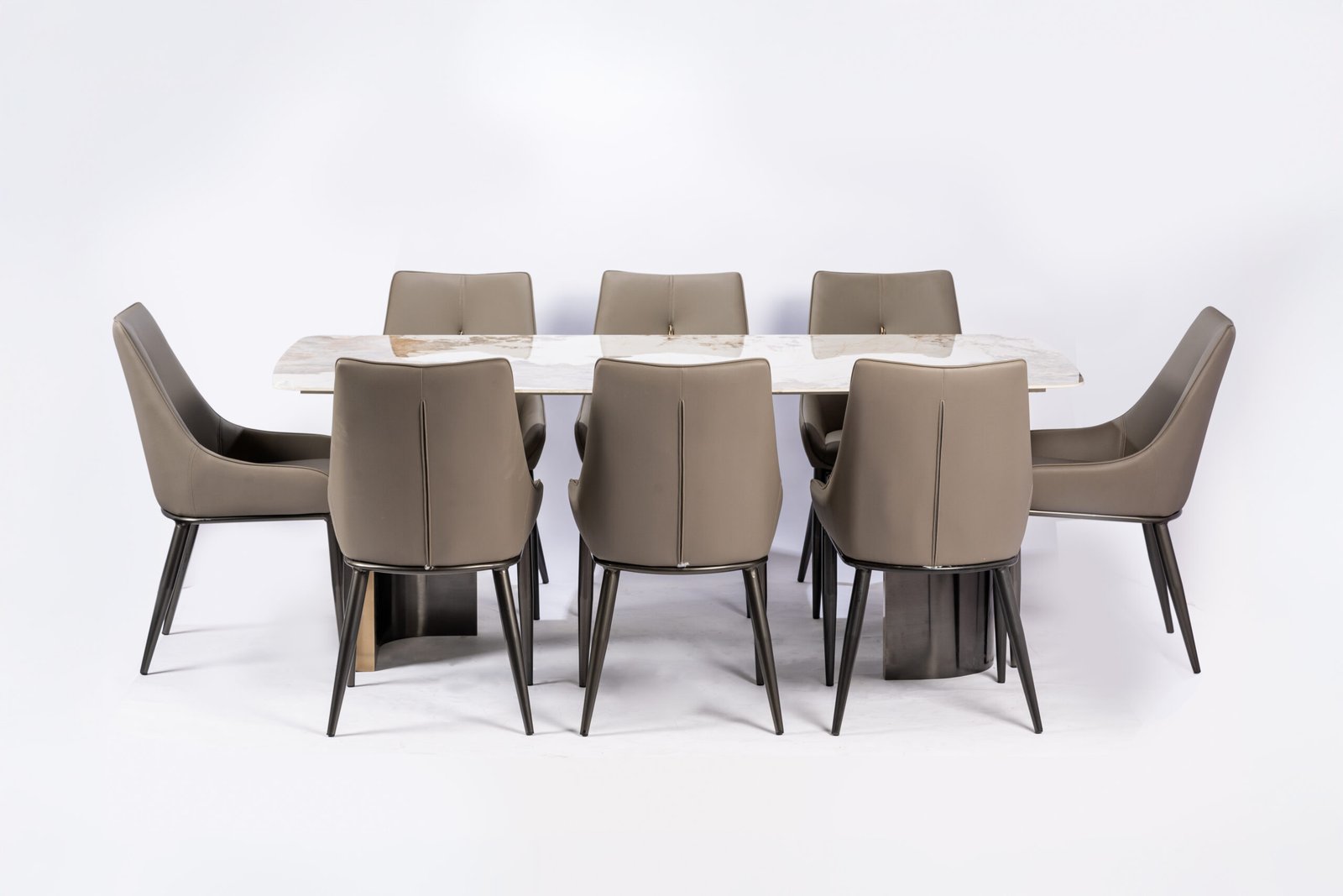 Modern Taupe Faux Leather Dining Chairs with Sleek Black Metal Legs, Designed for Compact Storage and Contemporary Interiors