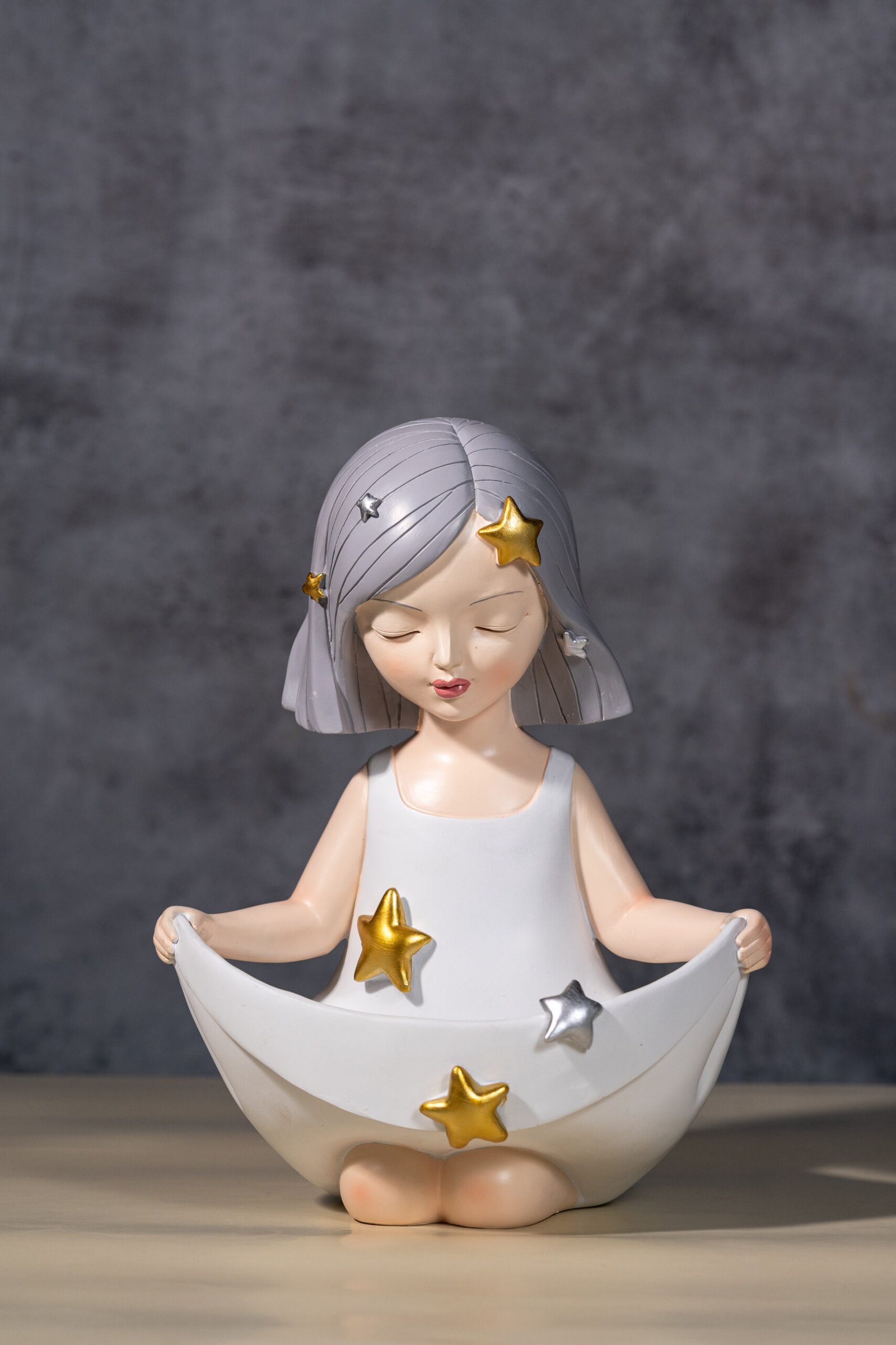 Nordic Style Resin Girl Figurine Statue with Stars and Flowing Skirt Design