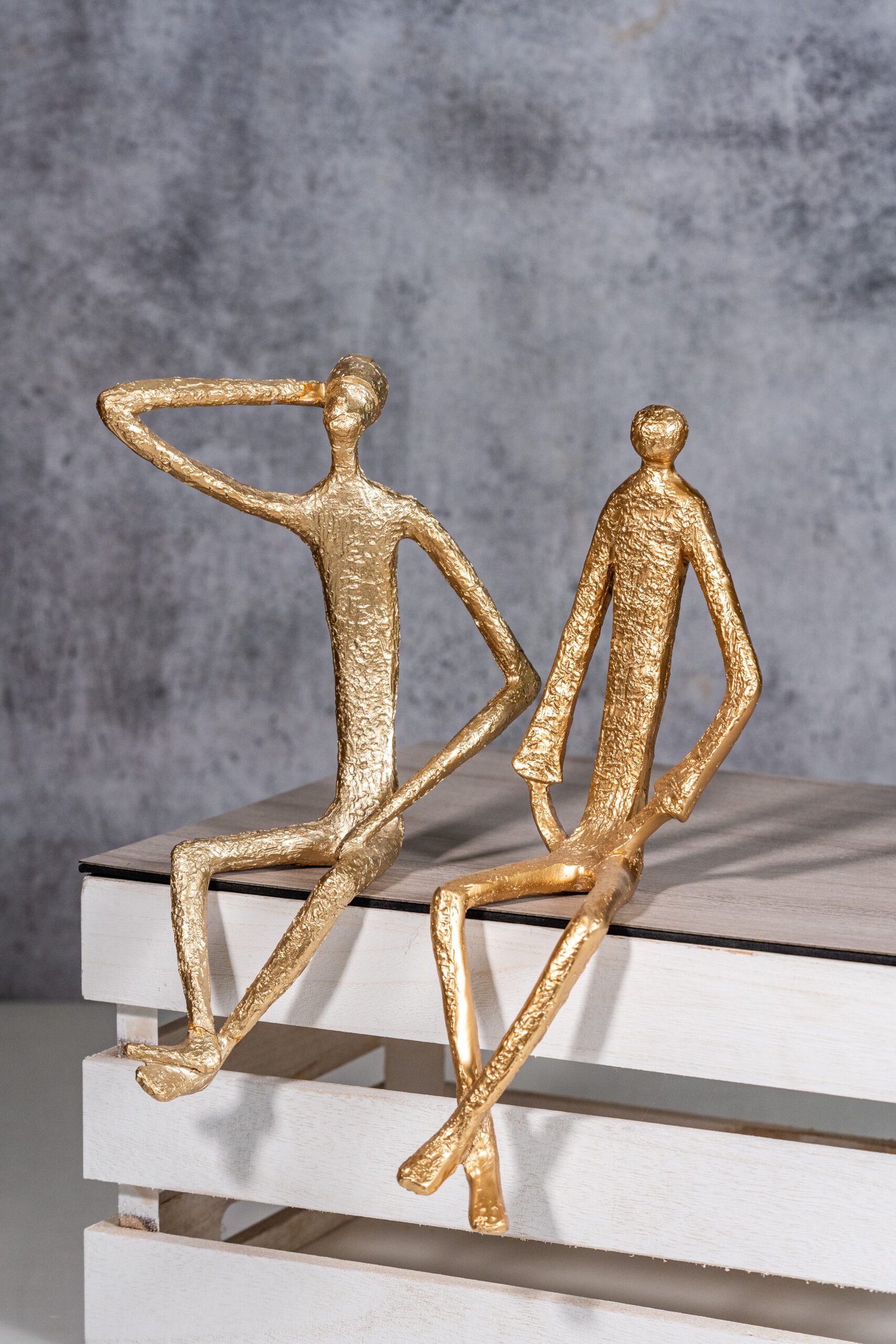 Two Abstract Gold-Colored Metal Sculptures of Sitting Figures